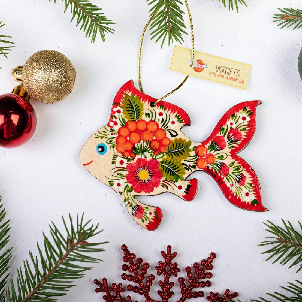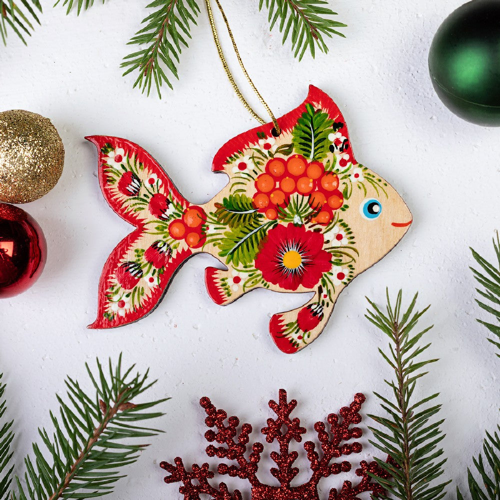 Hand-painted Christmas Ornament Fisch Ukrainian Folk Art