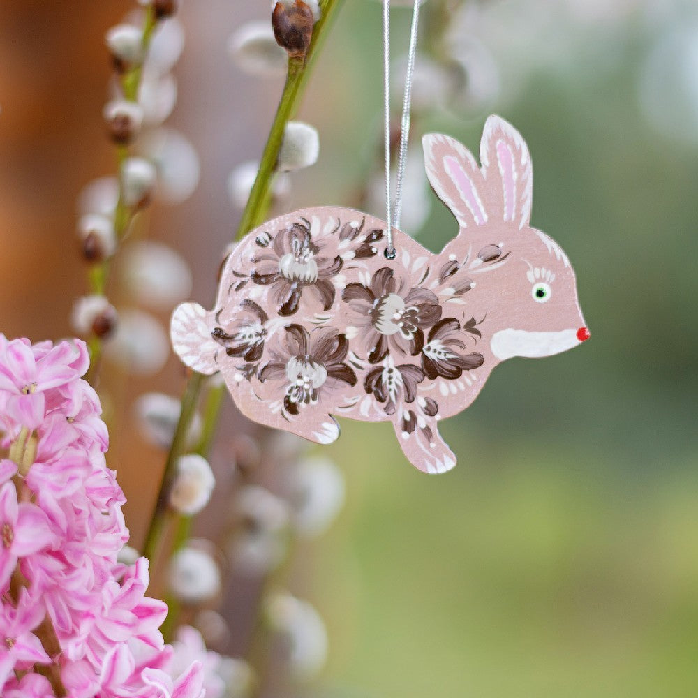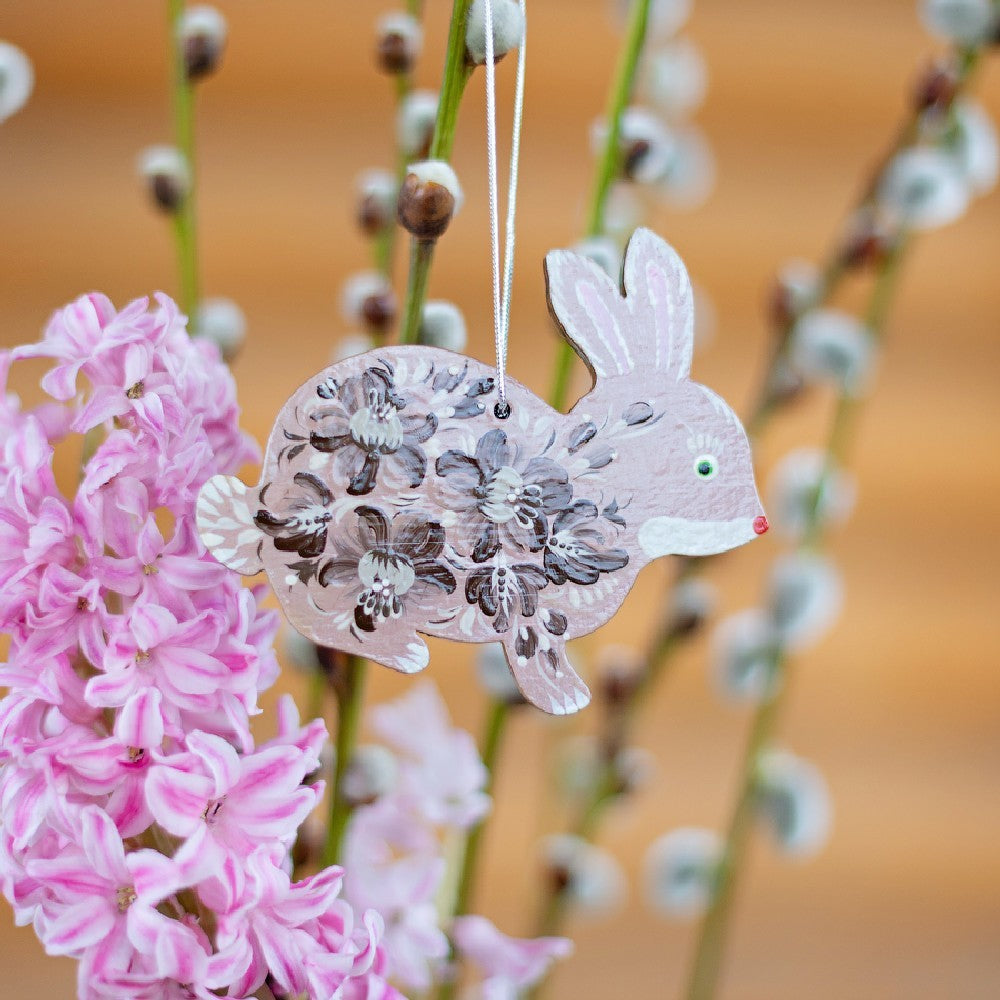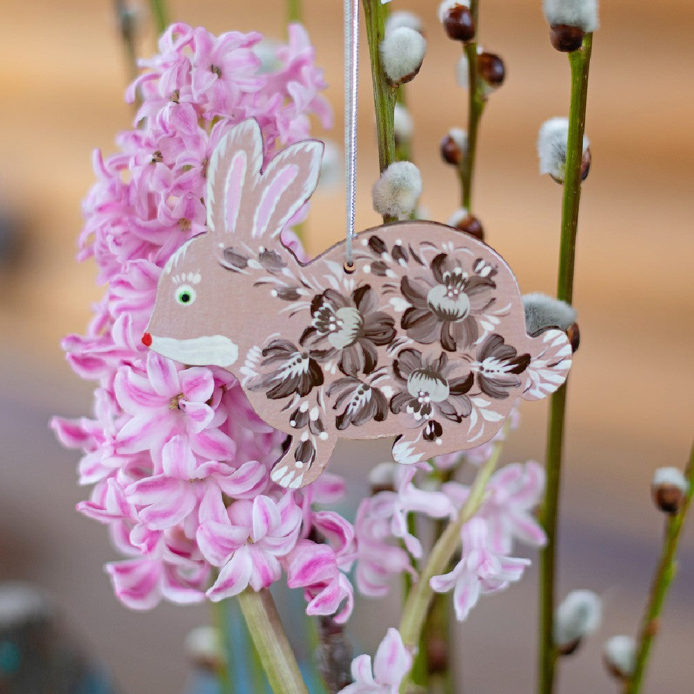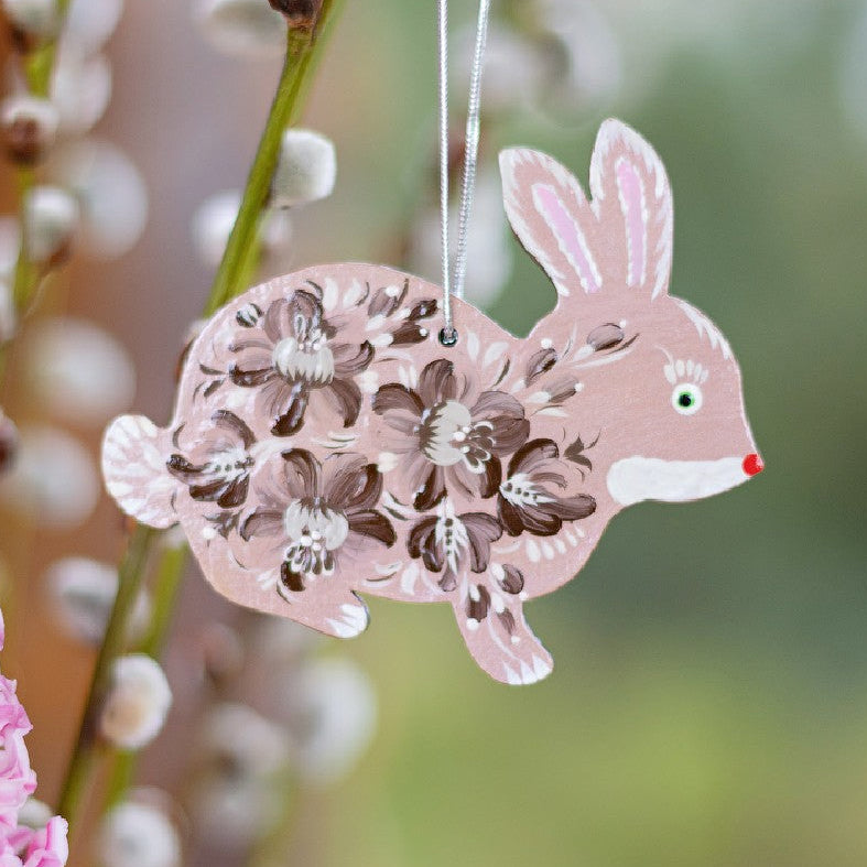Joli lapin de Pâques - pendentif en bois avec peinture ukrainienne