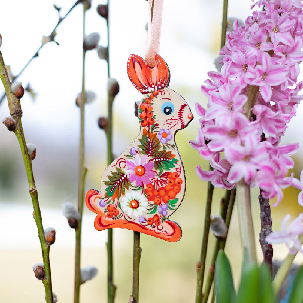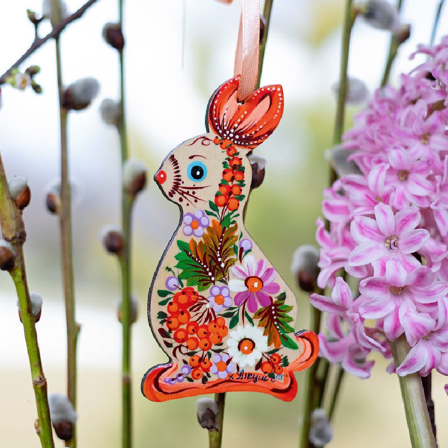 Lapin de Pâques avec œuf en bois à suspendre - Belle décoration de Pâques - Artisanat ukrainien