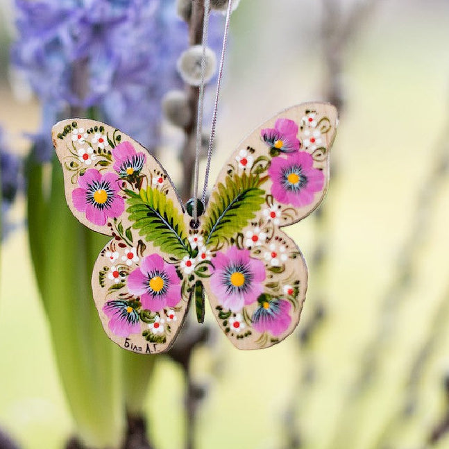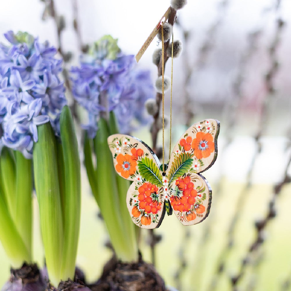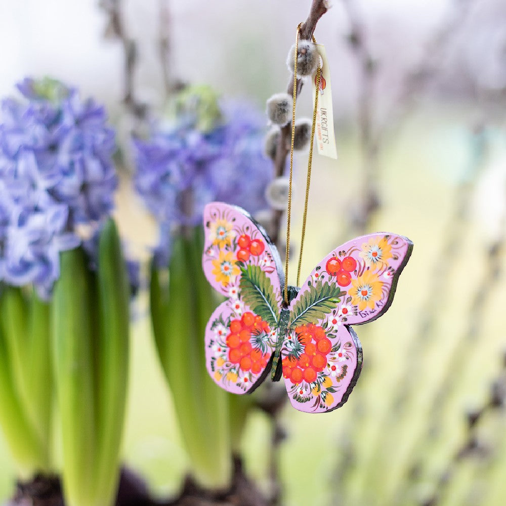 Suspension Papillon en Bois Peint à la Main – Décoration de Noël et de Pâques