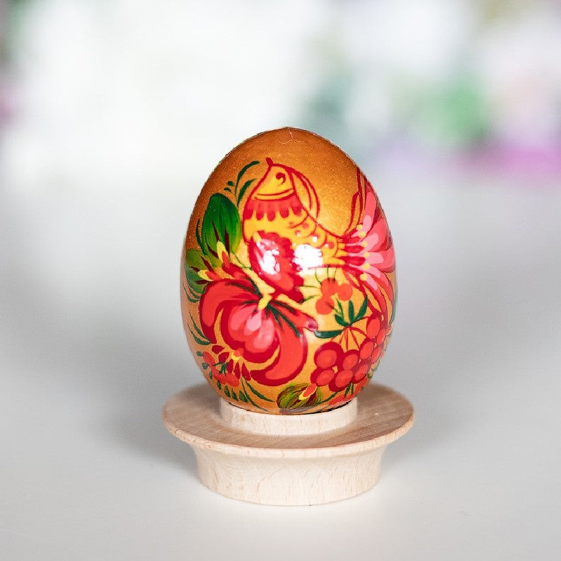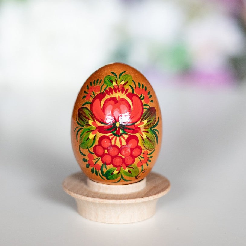 Das Holzei in Hühnerei-Größe ist ein wahres Kunstwerk, das die reiche Tradition der ukrainischen Petrykiwka-Malerei verkörpert. Mit leuchtenden Farben und einzigartigen Mustern, die von talentierten Künstlern per Hand aufgetragen werden, ist jedes Ei ein unverwechselbares Einzelstück.