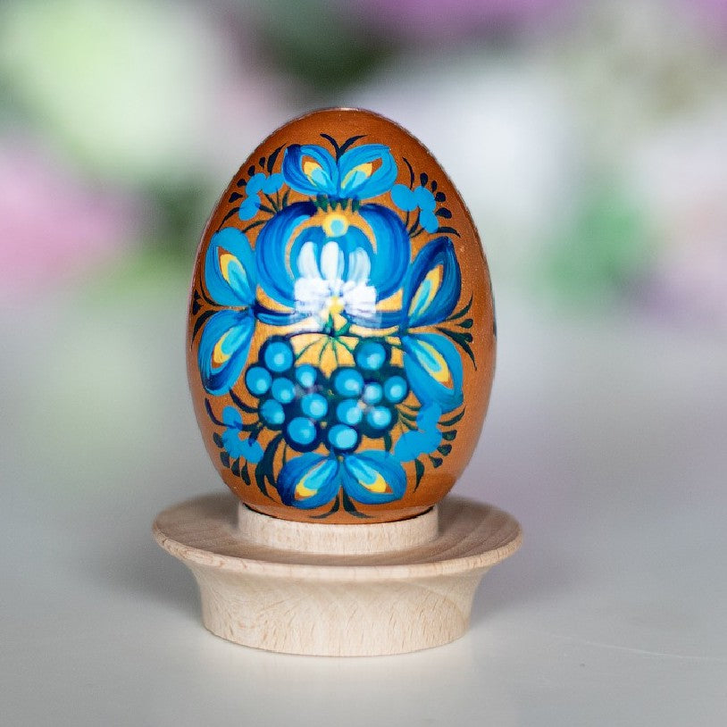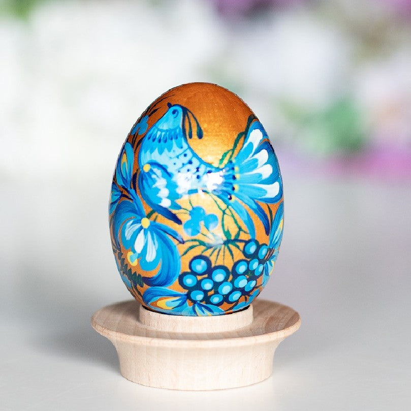 Das Holzei in Hühnerei-Größe ist ein wahres Kunstwerk, das die reiche Tradition der ukrainischen Petrykiwka-Malerei verkörpert. Mit leuchtenden Farben und einzigartigen Mustern, die von talentierten Künstlern per Hand aufgetragen werden, ist jedes Ei ein unverwechselbares Einzelstück.