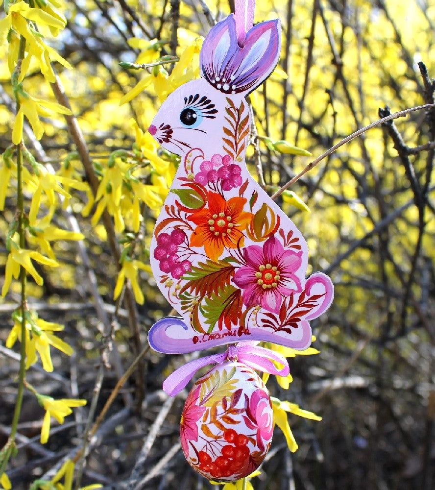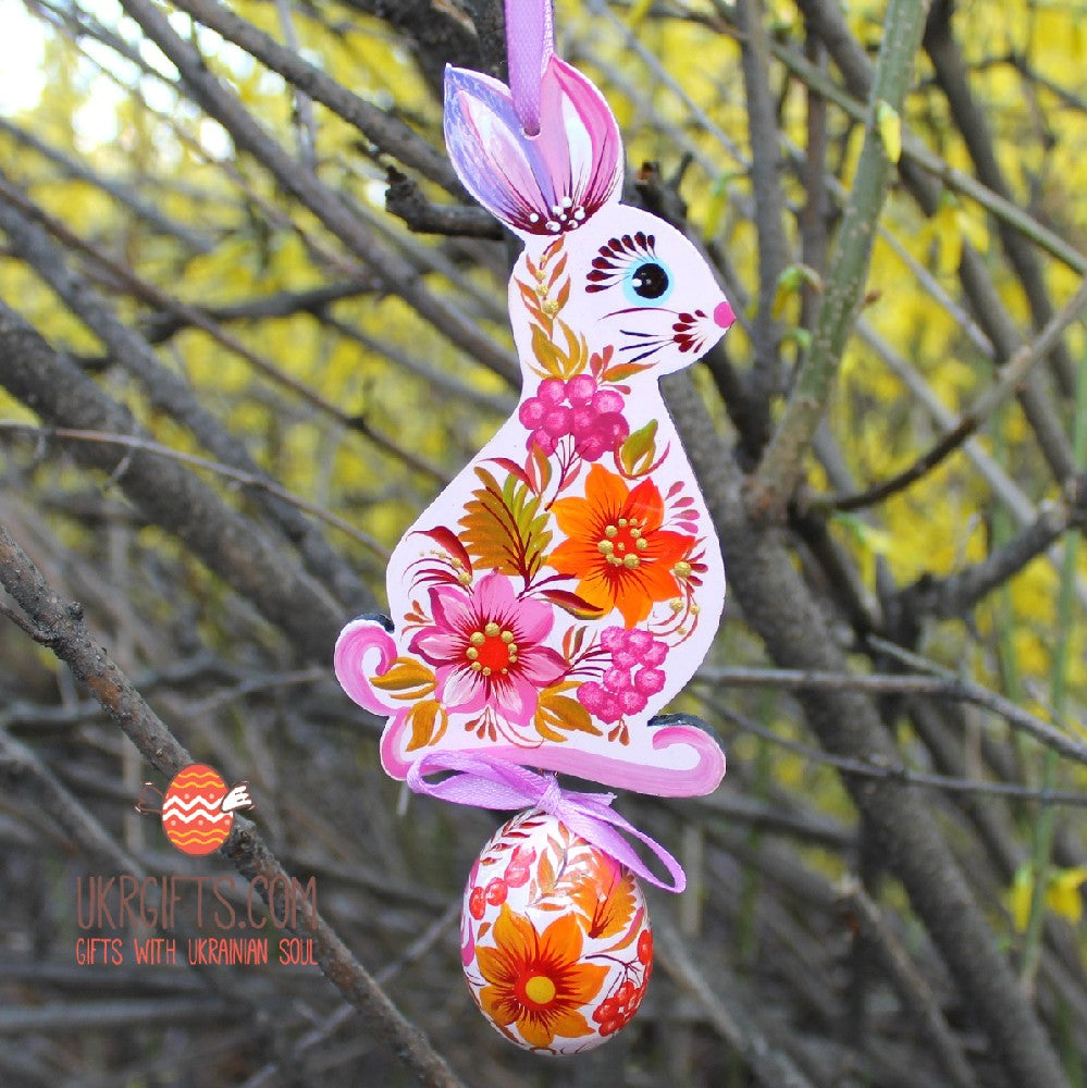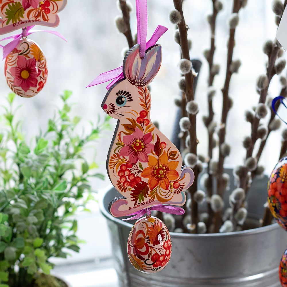 Handbemalter Anhänger - Osterhase mit dem Osterei aus Holz
