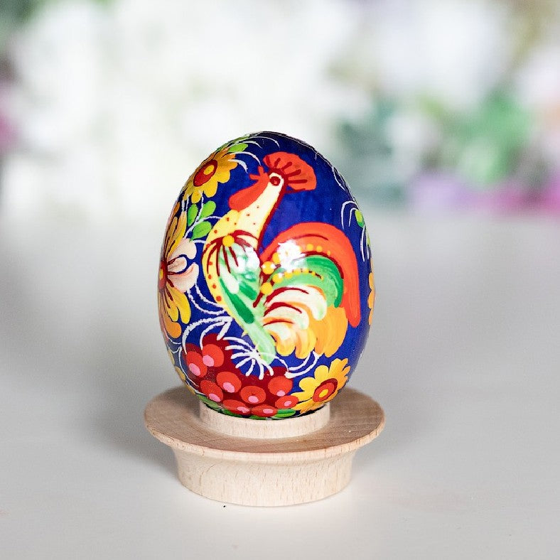 Handbemaltes Osterei aus Holz zum Aufstellen Ukrainische Petrykiwka-Malerei