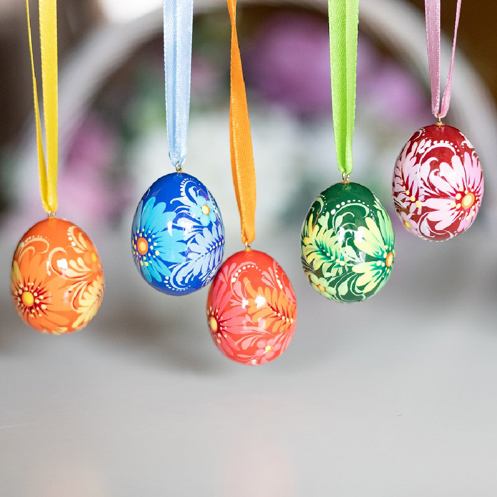Wir haben für Sie Sets zusammengestellt mit farblich abgestimmten, handbemalten Ostereiern. Jedes der kleinen Kunstwerke ist ein Unikat.