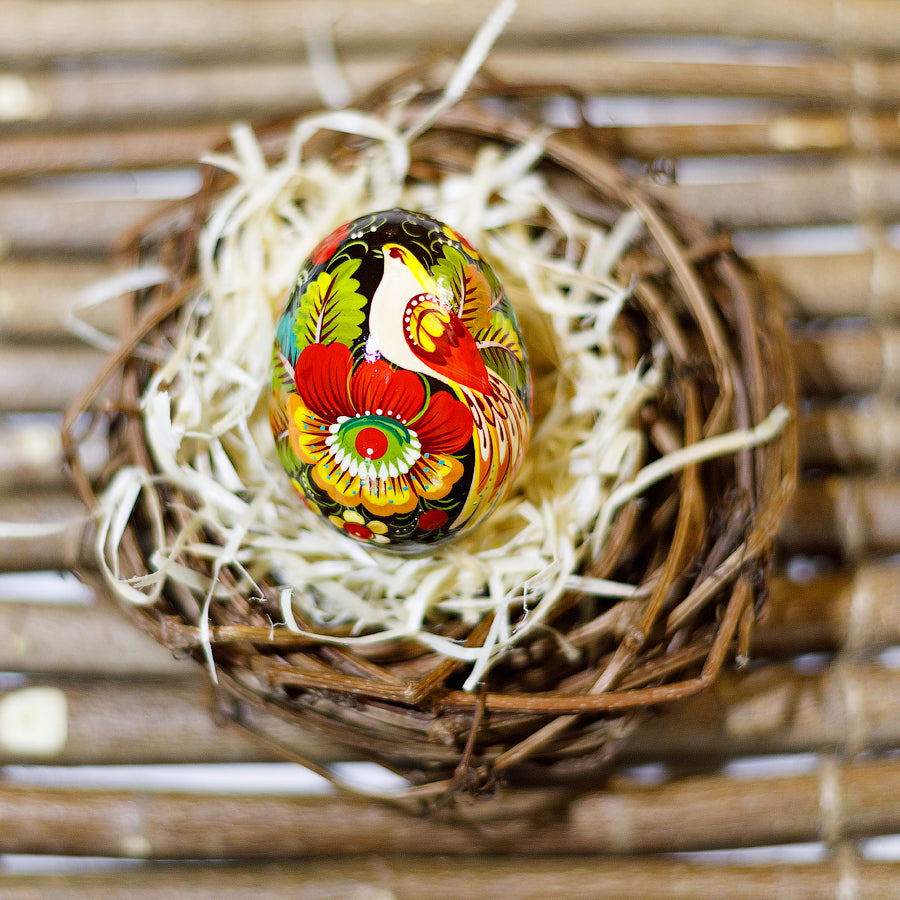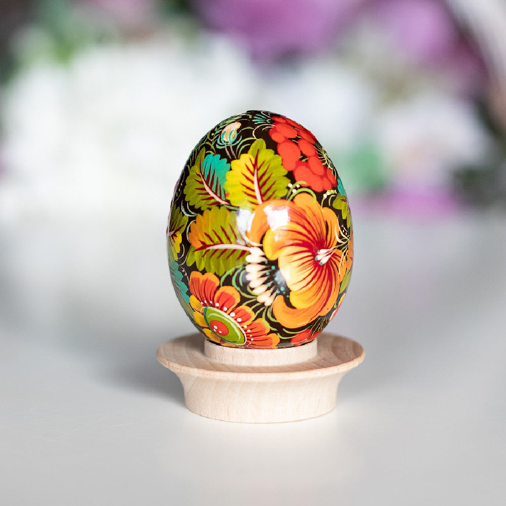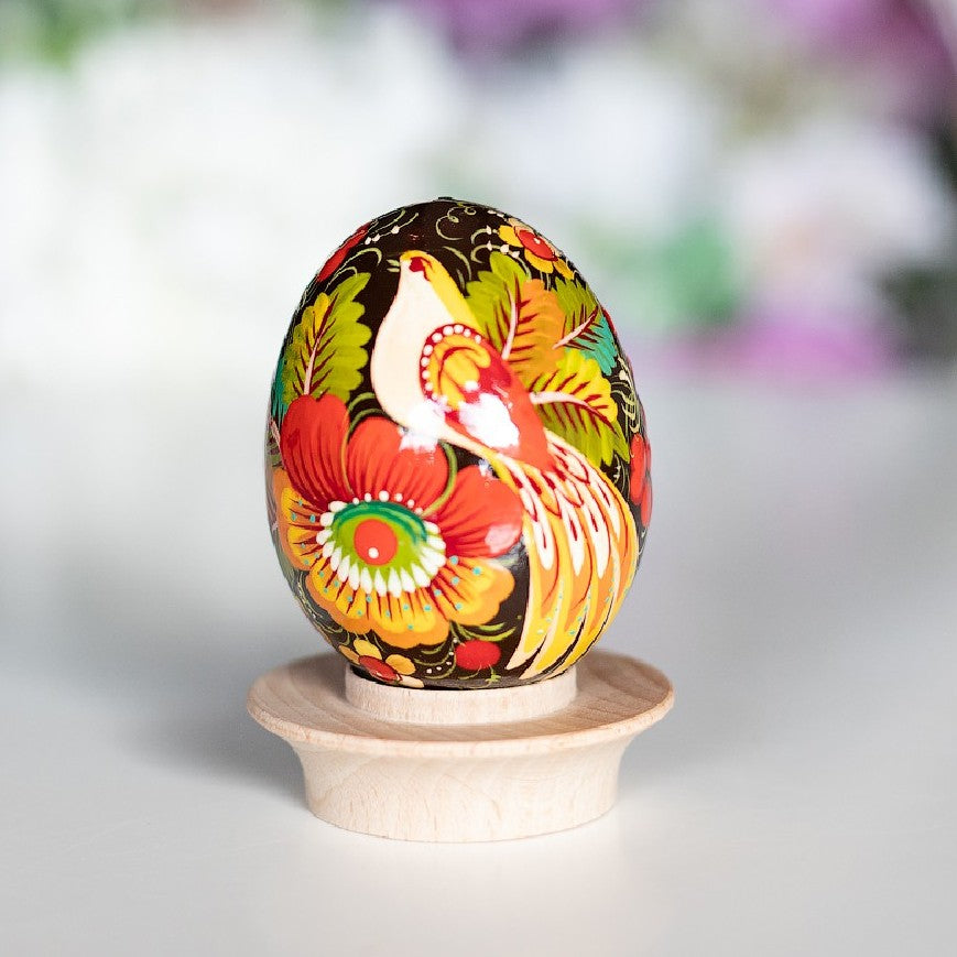 Das Holzei in Hühnerei-Größe ist ein wahres Kunstwerk, das die reiche Tradition der ukrainischen Petrykiwka-Malerei verkörpert. Mit leuchtenden Farben und einzigartigen Mustern, die von talentierten Künstlern per Hand aufgetragen werden, ist jedes Ei ein unverwechselbares Einzelstück.
